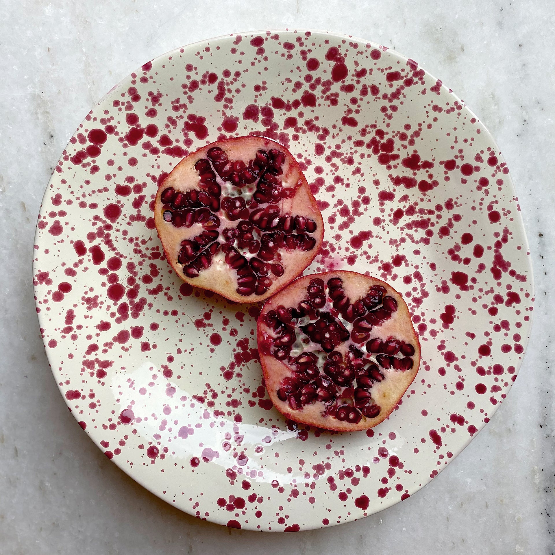 The distinctive “splatter” design originates from Puglia – also known as the “heel of Italy’s boot”. Handmade and painted by a ceramics artisan who has produced pieces in the same town for 18 generations, this means no one is the same and your item is truly unique. Available in a blueberry, pistachio, burnt orange, or cranberry splatter.